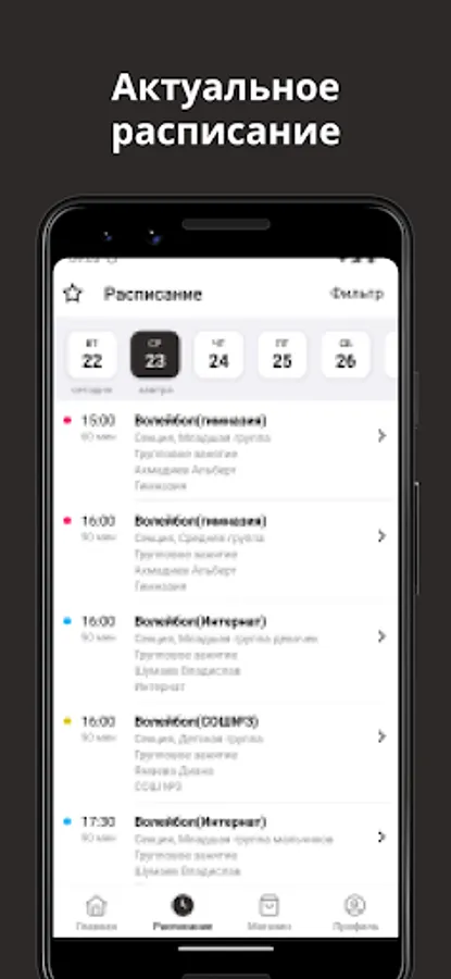 - receive PUSH notifications about schedule changes, subscription expiration, club events and promotions;