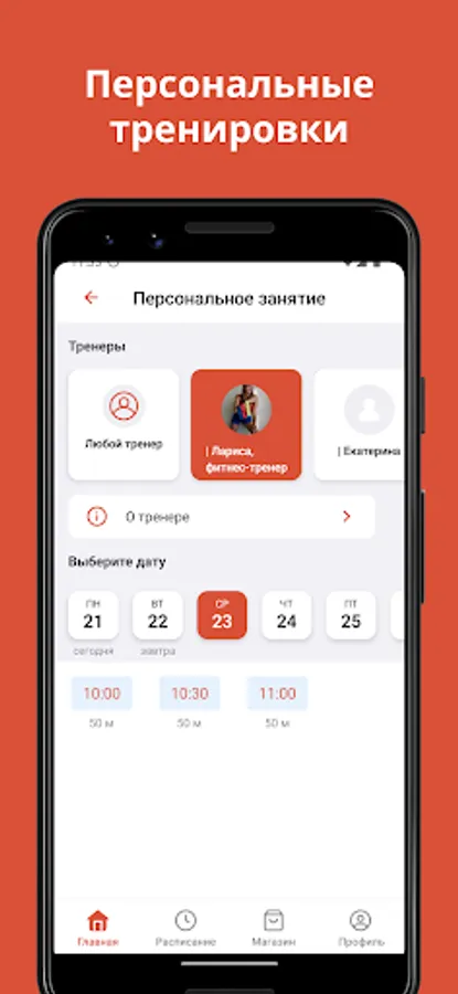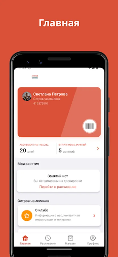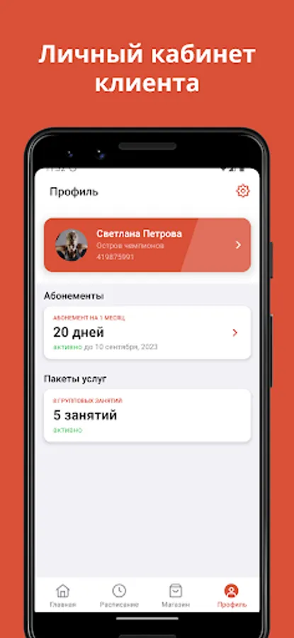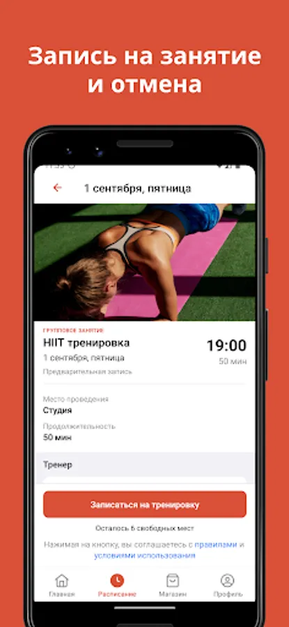 Online registration for group and individual classes in the fitness studio. Personal account of the client, the ability to sign up for classes and pay for the subscription at any time in the application.