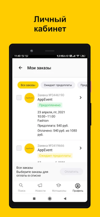 - Personal account with the history of all orders in the studios, not even made in the catalog