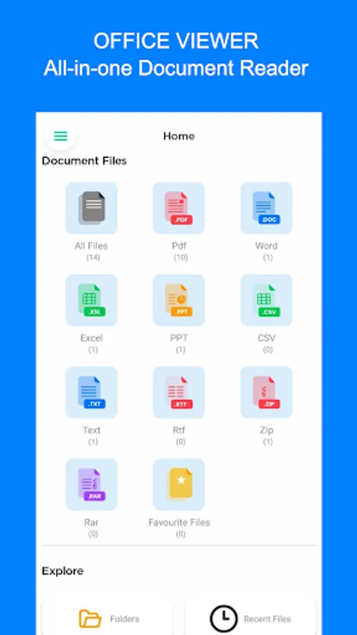 Looking for an app that can open all types of files on your phone with just one application? All Document Reader may be just what you need. This file viewer is compatible with all Office files and can handle a range of formats, including PDF, DOC, DOCX, XLS, XLXS, PPT, and TXT. It can automatically scan your phone's files, organizing them into corresponding folders for easy searching and viewing.