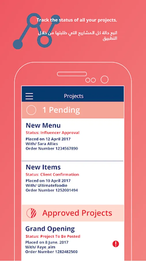 • Track the status of all your projects through the app, and sync them to your calendar.