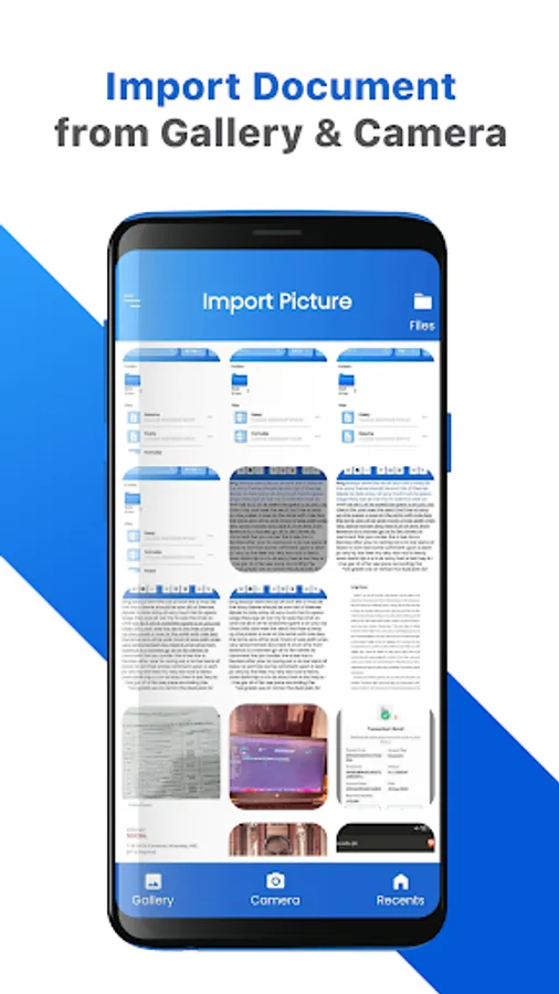Scan images from camera, gallery or recent folder, documents, receipts, business cards & brochures
