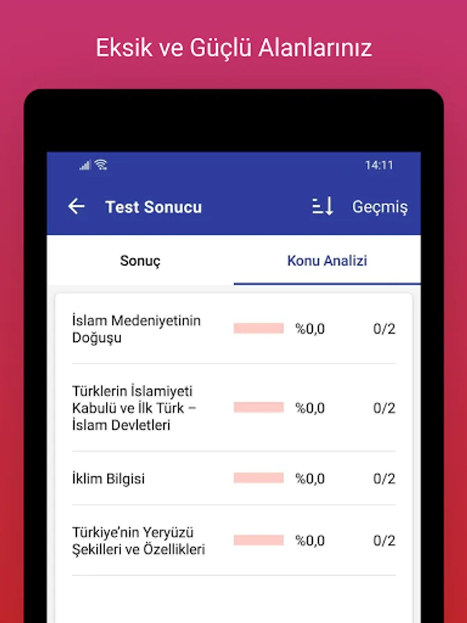 - Find out your test result, success, ranking, strengths and weaknesses.