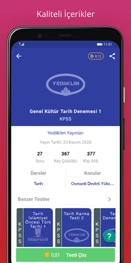 Prepare for KPSS, TYT, AYT, YKS, LGS, ALES, YDS and DGS exams with the most up-to-date tests of experienced and quality publishing houses.