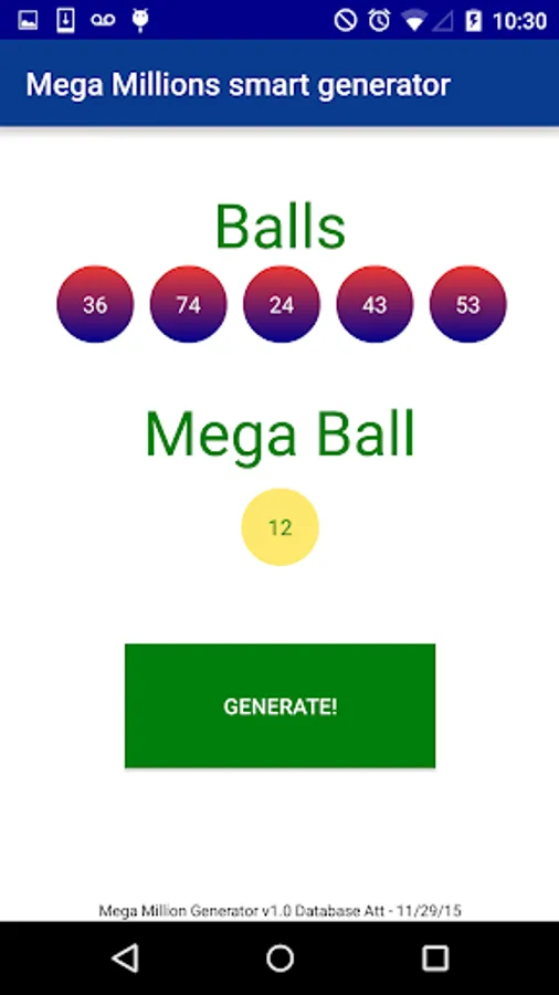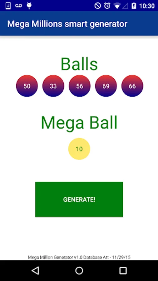Generate Mega Millions games applying a higher probability of numbers que Were drawn more with this app!