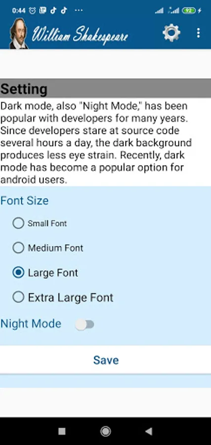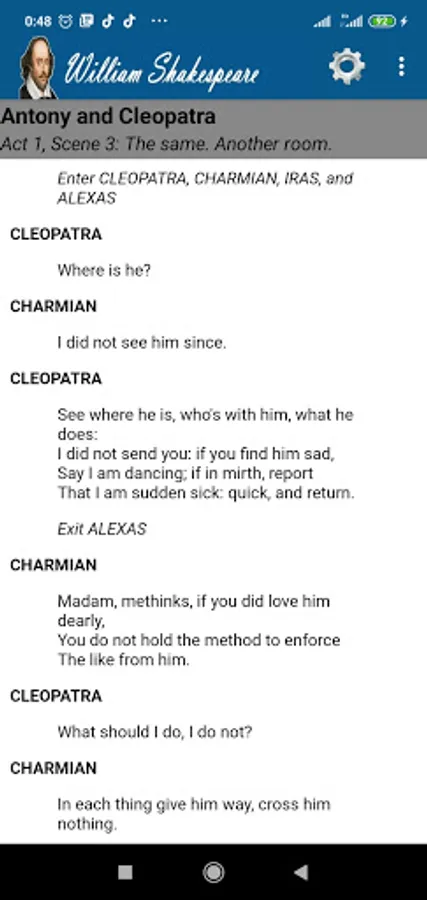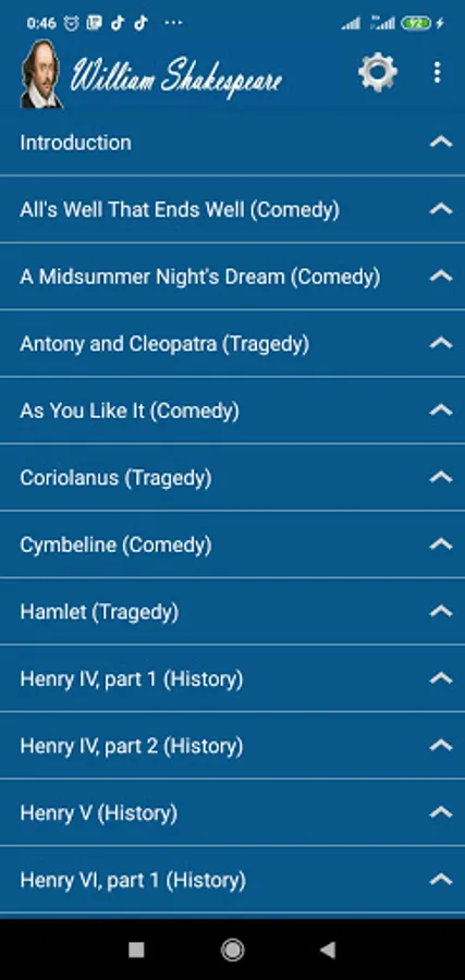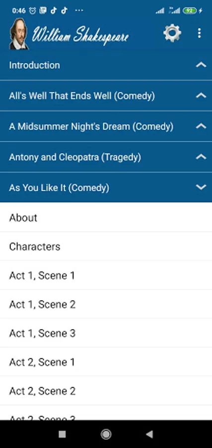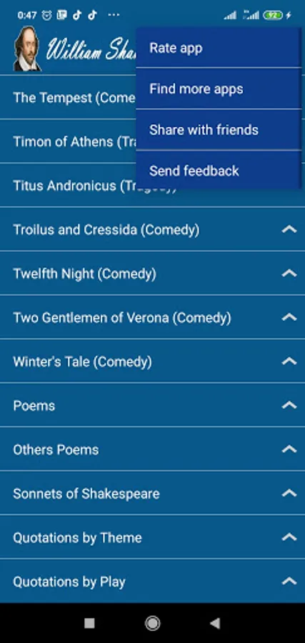This app comprises on all work of William Shakespeare including Plays, Poems, Sonnets and Quotes. All work is categorized in very easy way. The app is bearing following material.