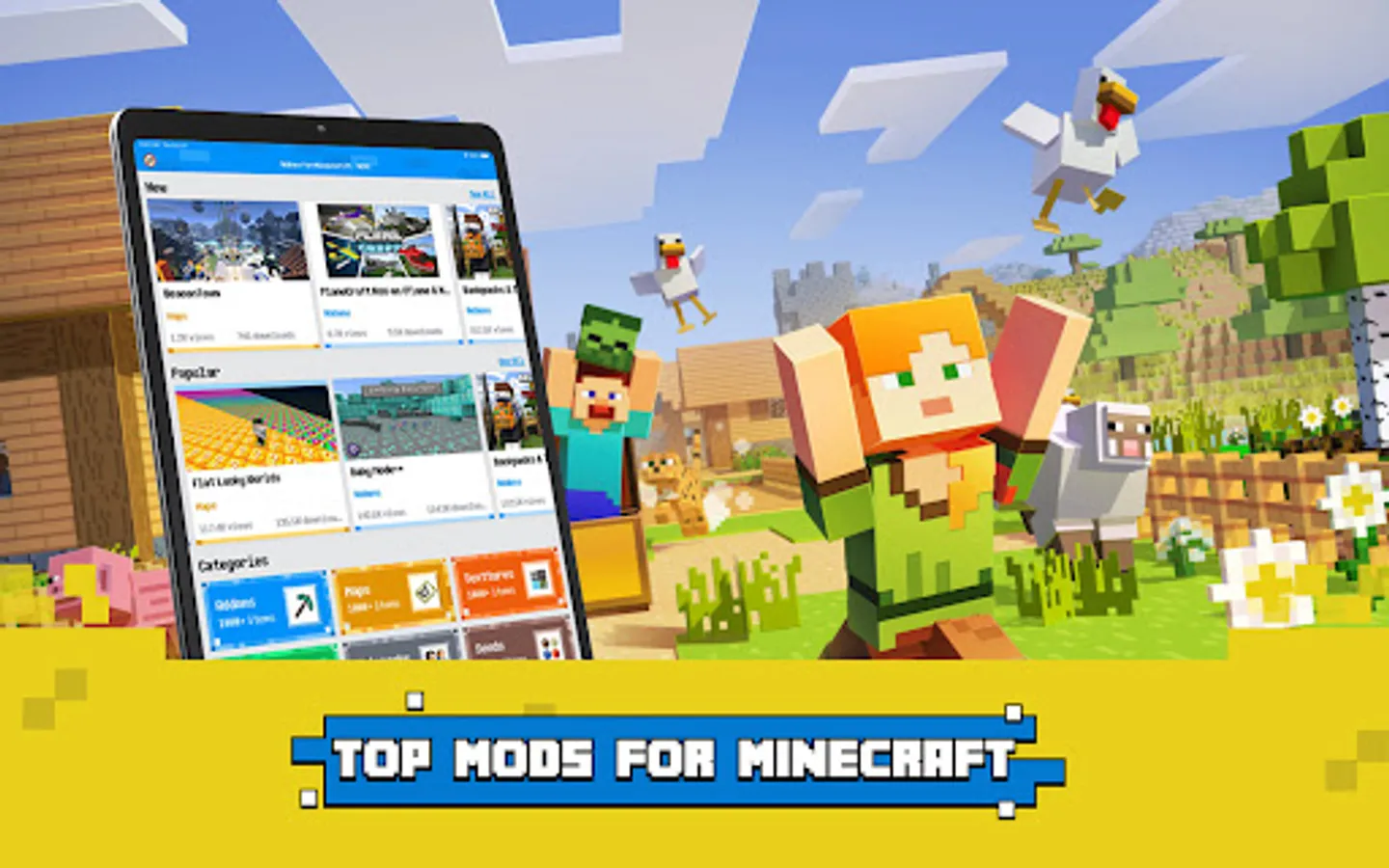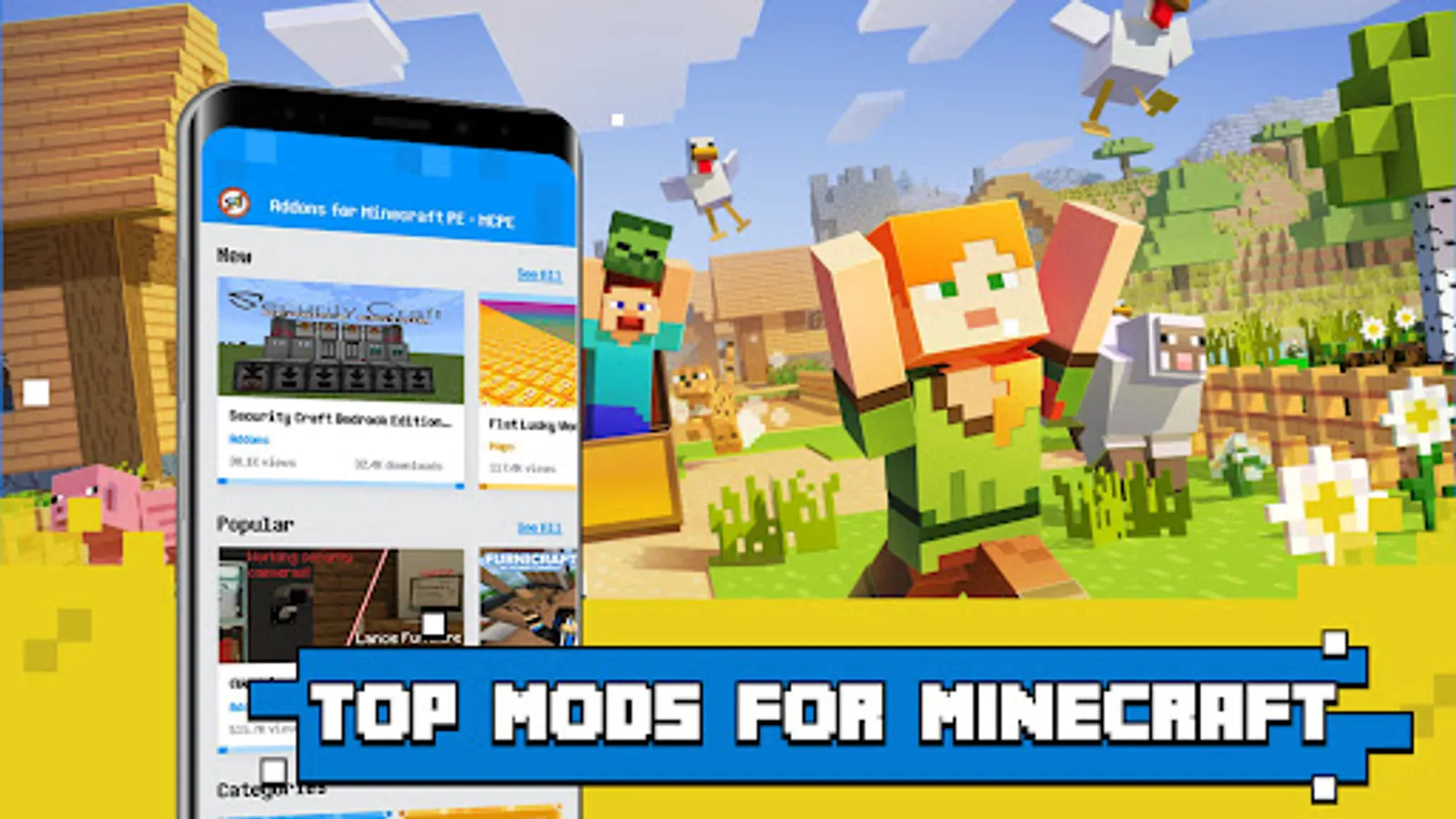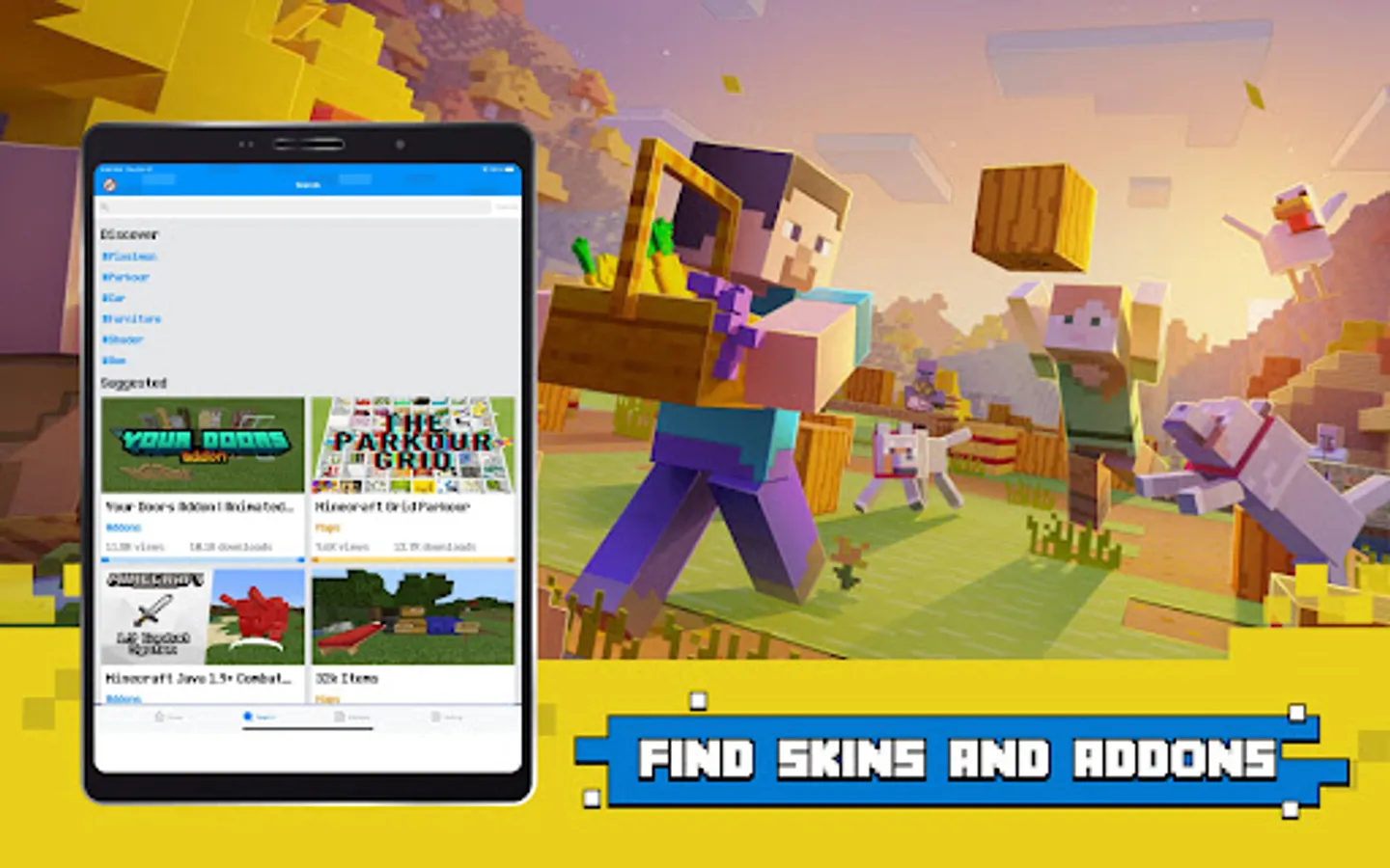 Addons for Minecraft MCPE PE app offers you add-ons, maps, mods, seeds, texture packs for Minecraft.