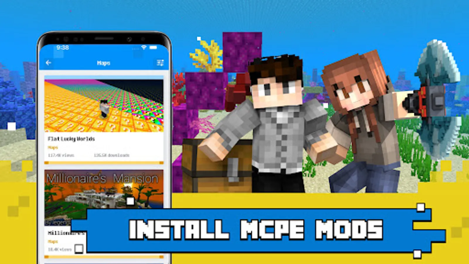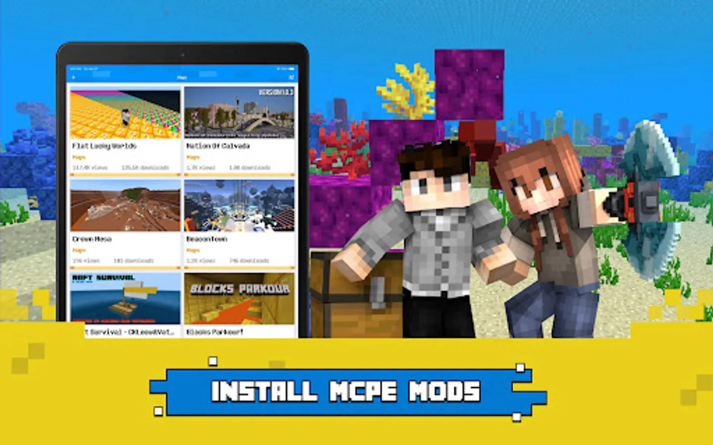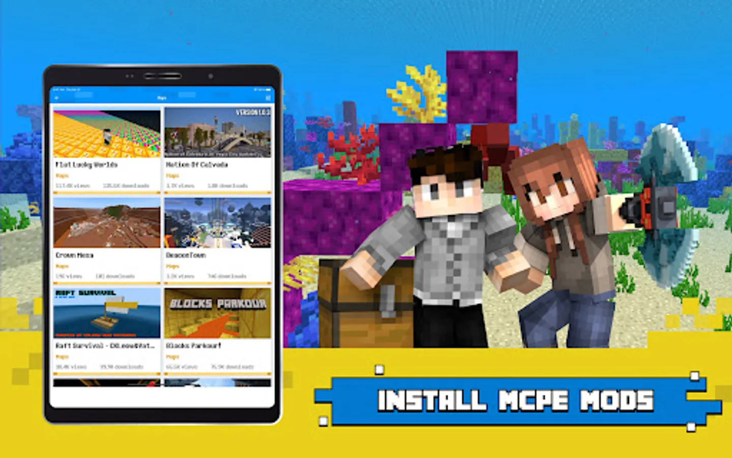 So, whether you are looking for shaders for Minecraft, minecraft mods, maps or mcpe texture packs, we bring you minecraft worlds in our minecraft bedrock app.
