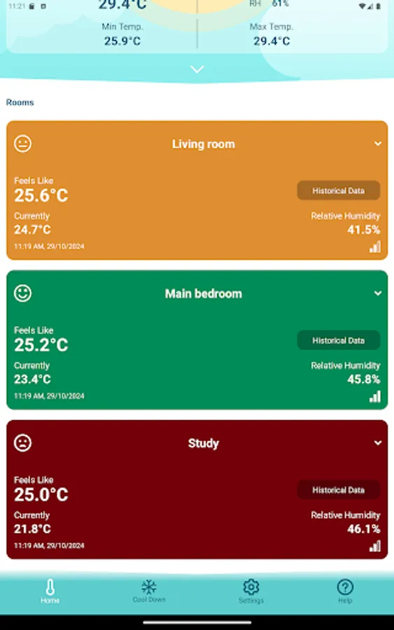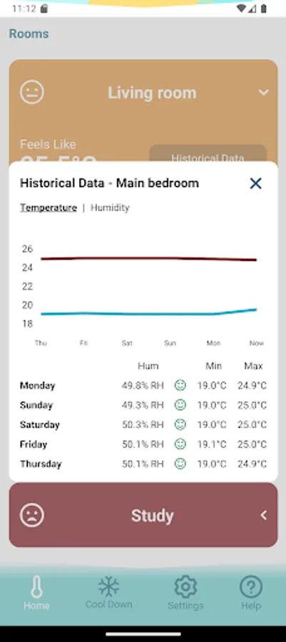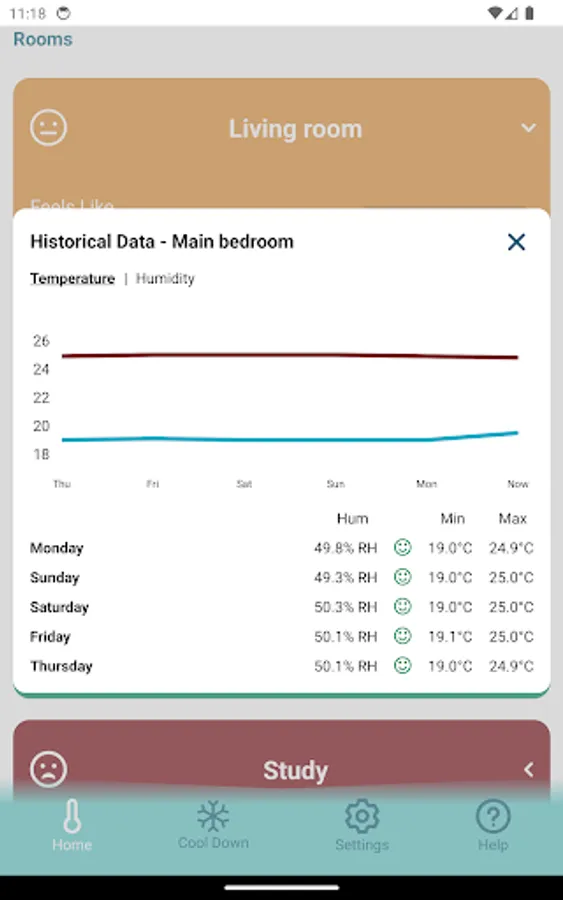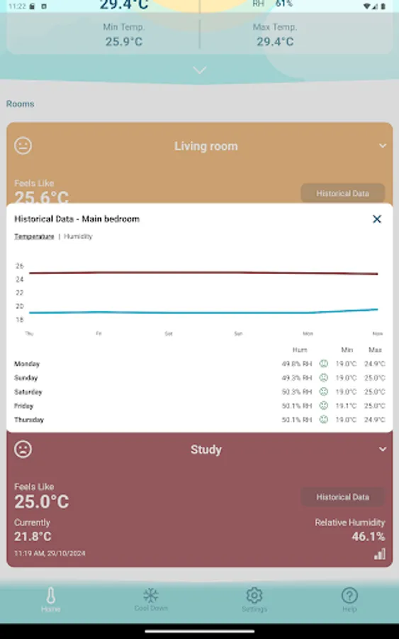 Stay prepared with a forecast of local temperature and humidity. Integrated with weather data, the app gives you a complete view of current and upcoming conditions, helping you plan ahead.