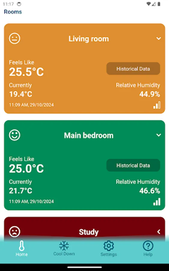Receive accurate, real-time data from up to four temperature and humidity sensors installed throughout your home, ensuring you stay informed about comfort levels in each room.