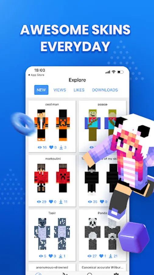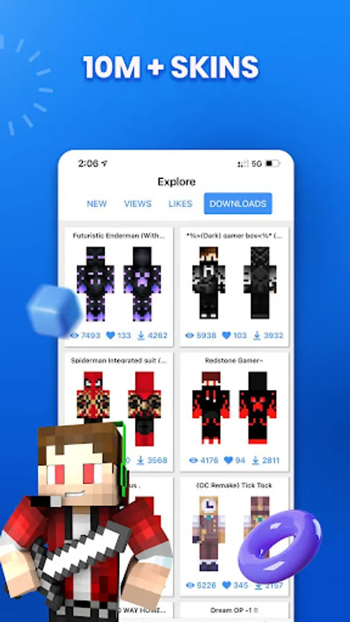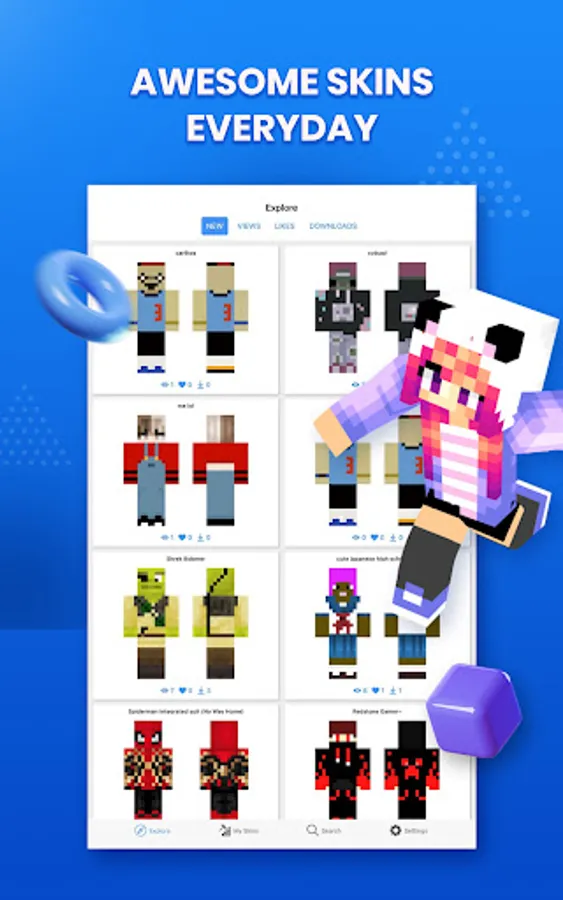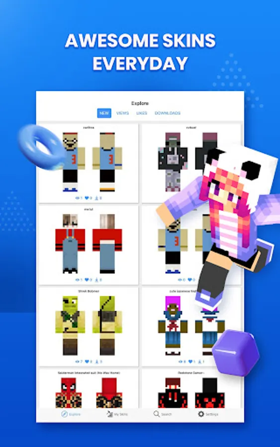 Skins for Minecraft Custom Skin app allows you to create customized Minecraft girls, boys and other skins for a better gaming experience.