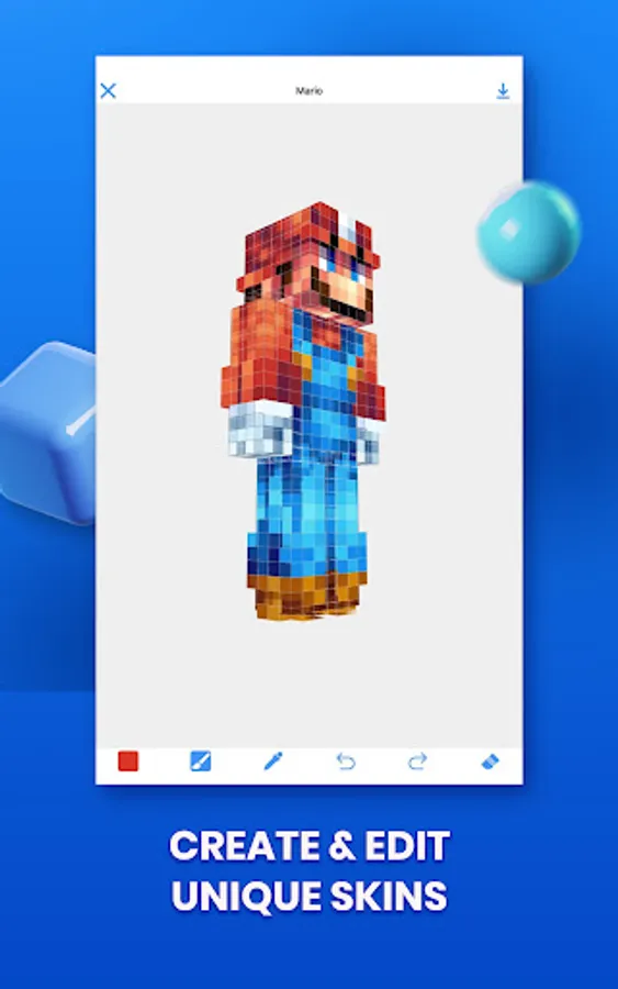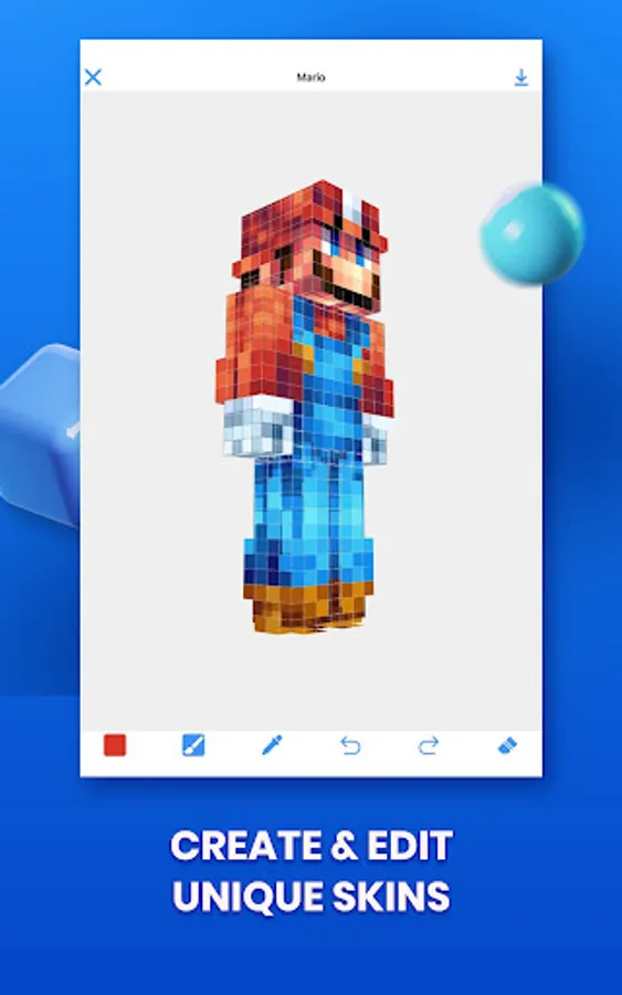 # The fascinating graphics and smooth user-interface of this custom Minecraft skins maker app will allow you to create new skin effortlessly. Without going through any complicated setting, you can install the app and start creating customized skins right away.