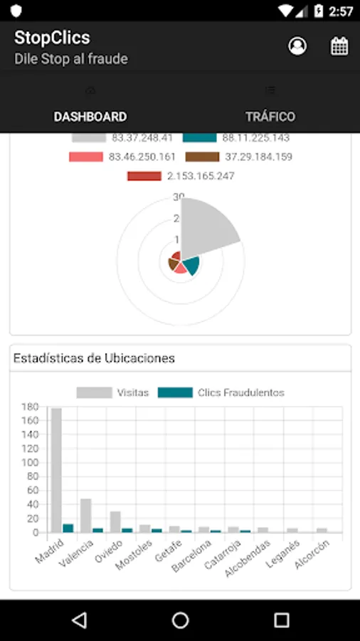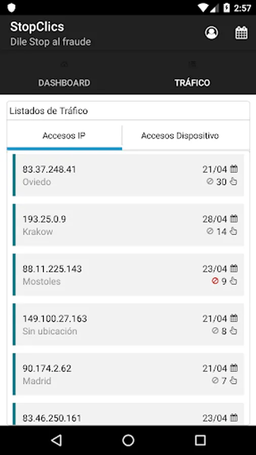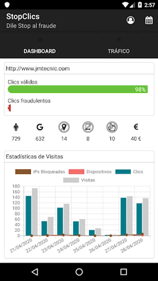 With StopClics you can avoid thousands of invalid clicks in your pay per click advertising campaigns. Our fraudulent traffic filtering system is capable of blocking access to your web pages and getting you to invest your advertising budget correctly.