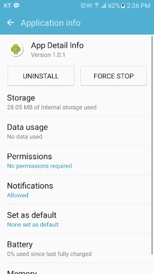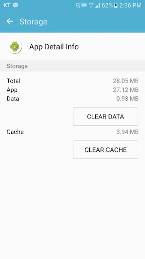 In the storage area, you can delete the application clear data (initialize), clear cache, and see the information such as Data usage, Permissions and notification at a glance.