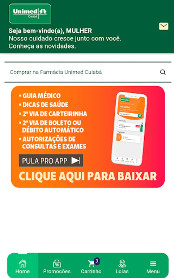 The Pharmacy Unimed Cuiabá application is an exclusive tool for Unimed Cuiabá customers, with resources to purchase products in our stores.