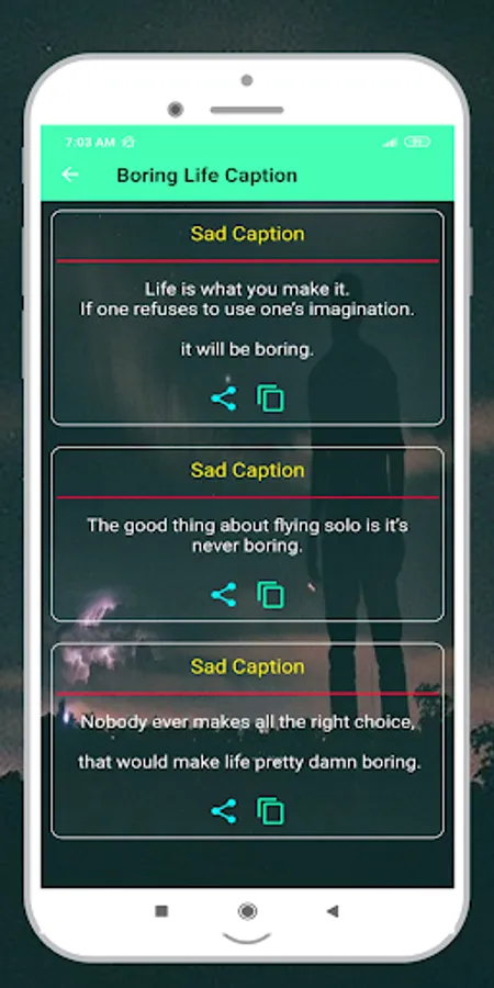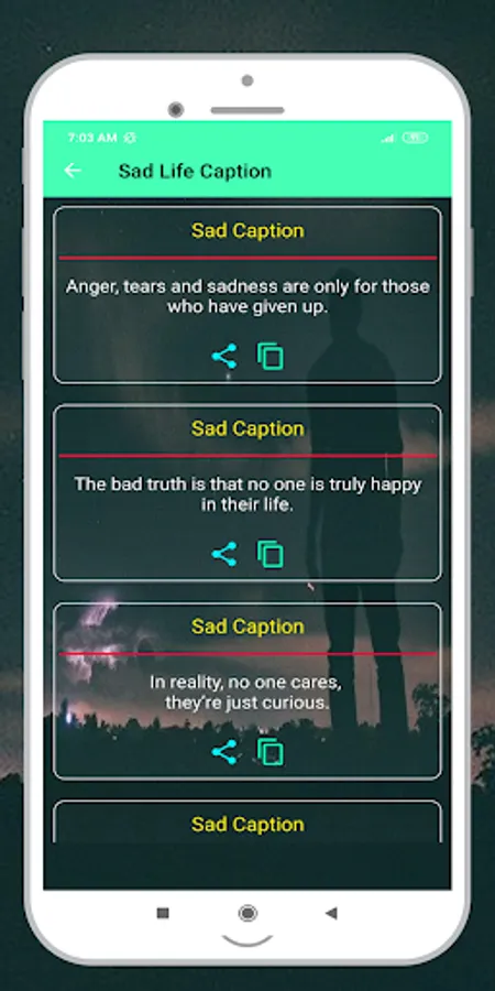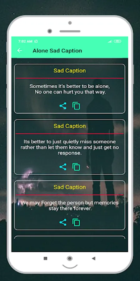 Sad Caption English From this app you will get all kinds of difficult captions and status. You will get a text to caption the picture of your trouble. You may have many kinds of trouble in your mind. If he shares the sufferings anywhere, the pain of the mind becomes a little worse.
