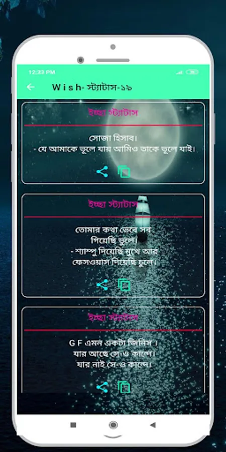 এখানে যে ইচ্ছার স্ট্যাটাস আর পোস্ট গুলো আছে আপনি আপনার বন্ধুদের সাথে সেয়ার কারতে পারবেন ।