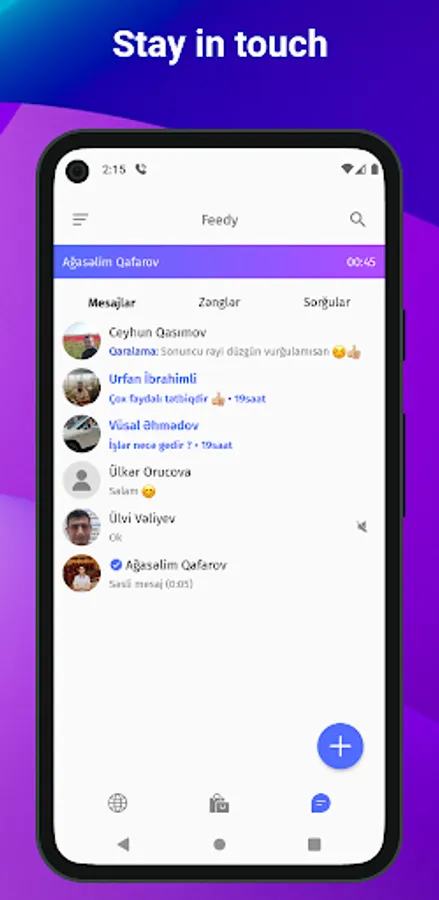 Audio calls: Forgot numbers to call to each other. Just select a person from your list and call. Tell about your ideas and feelings.