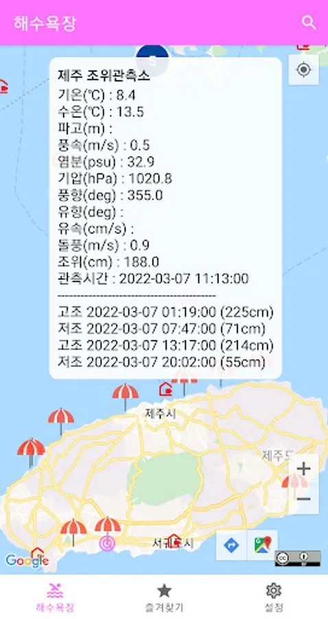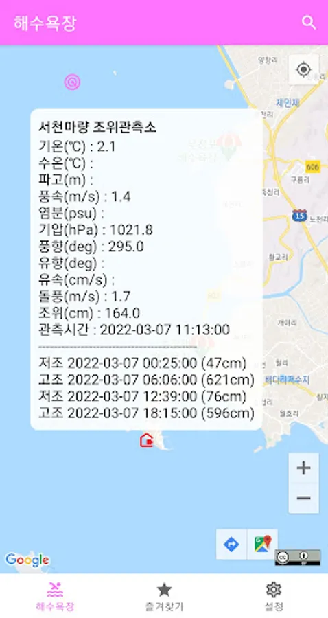 해수욕장 위치, 조위관측소, 해양관측부이를 아이콘으로 제공합니다.