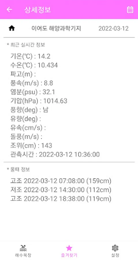 업데이트 - 전국 해수욕장, 조위관측소, 해양관측부이, 날씨, 물때 등의 정보를 실시간 업데이트합니다.