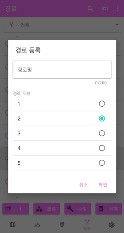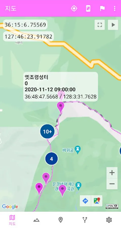 2. When saving the route, the address for the current coordinate is registered together. However, if there is no internet connection, address registration is not possible.