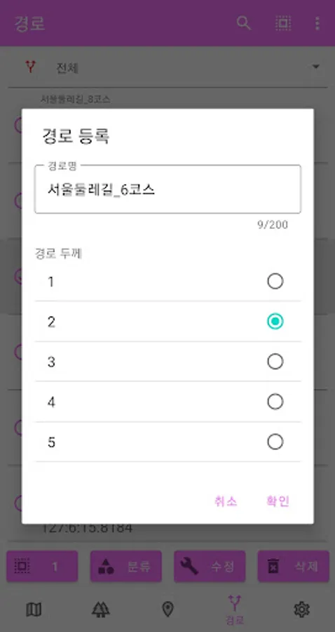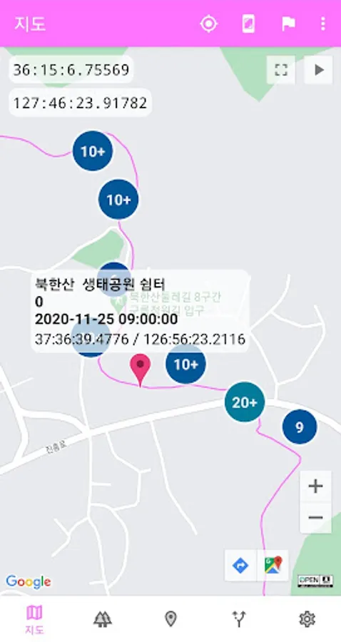2. When saving the route, the address for the current coordinate is registered together. However, if there is no internet connection, address registration is not possible.