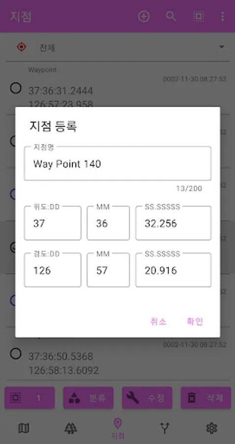 2. If there is an address for new or modified coordinates, the address is registered together. However, if there is no internet connection, address registration is not possible.