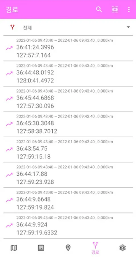 2. When saving a route, the address for the current coordinates is registered together. However, address registration is not possible if the Internet is not connected.
