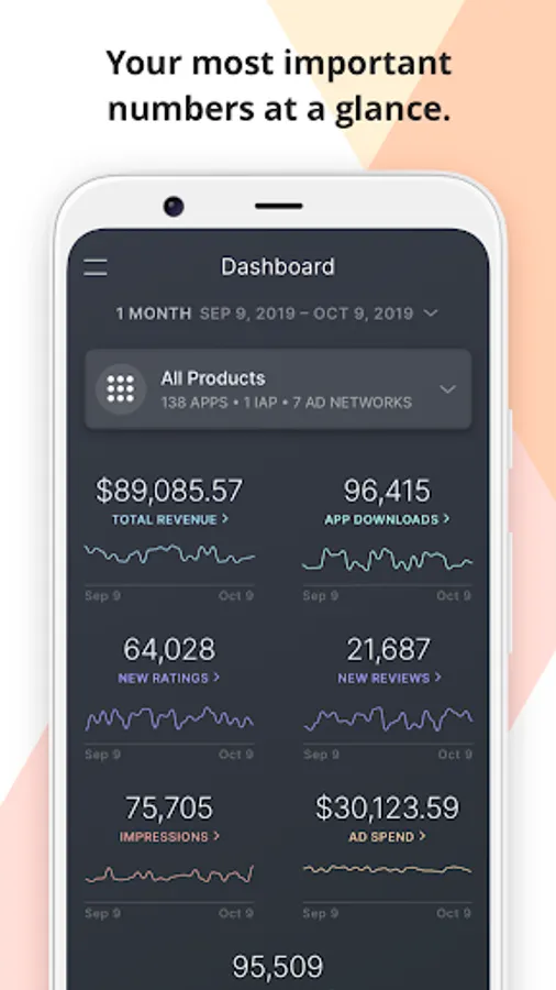 Appfigures packs simplicity and detail into one app: A unified dashboard lets you stay on top of every important metric quickly--from downloads and revenue to ratings. Powerful and intuitive reports give you access to detailed trends. And real-time alerts ensure you'll always have you finger on the pulse.