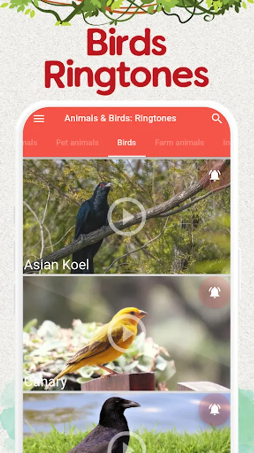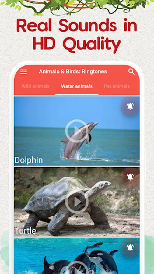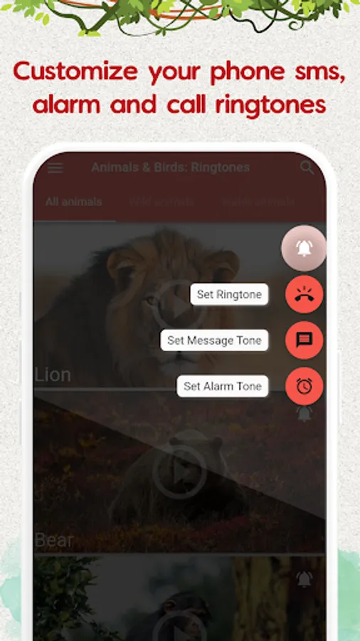 • You can use these animals’ sounds as a ringtone, a notification ring for other apps and messages, and an alarm clock sound.