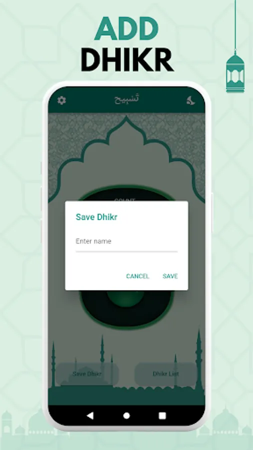 • Save the dhikr option to save your ongoing zikr or tasbeeh session.