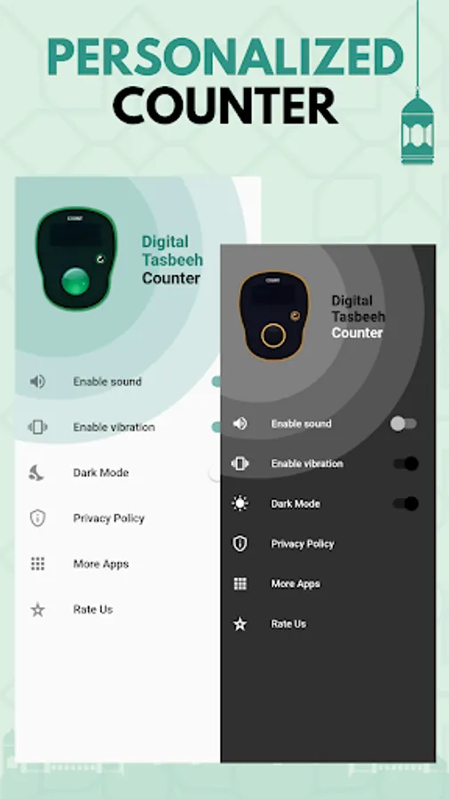 • Customize audio and vibration settings of tasbeeh counter with easy toggle options for on/off to your preferences.