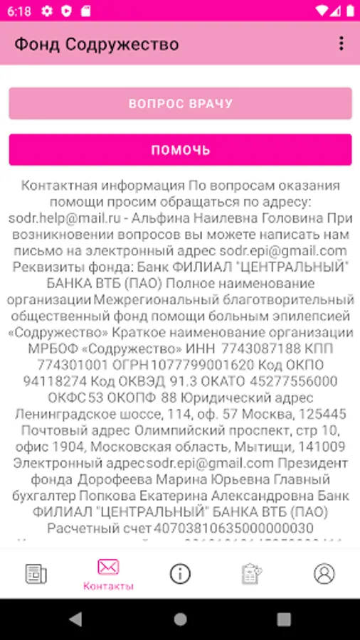 Application of the Charitable Foundation "Commonwealth", in which you will always find out the latest news, important information of the foundation, you can ask a doctor a question or make a donation for treatment. Also in the application, the function of fixing and maintaining statistics of epileptic seizures is implemented.