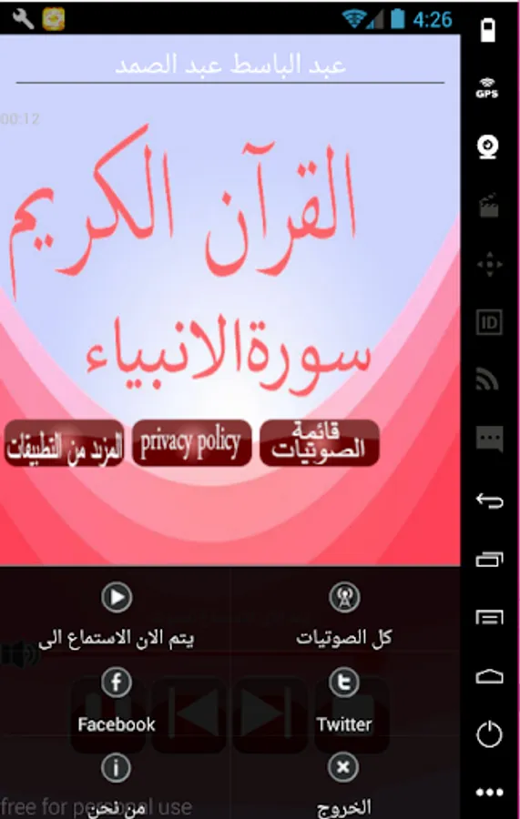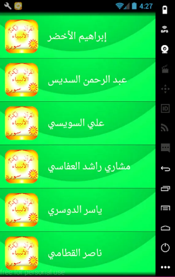 There is also in this application Surat Al-Anbiyaa the Holy Qur’an several readers among them