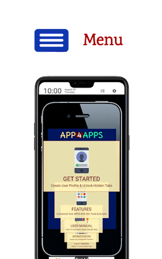 AppForApps is a Mobile application that you can use to create any type of Mobile App directly on your phone or tablet without programming skills. You can download the AppForApps for free today and sign-up to begin building your own customized Mobile Application within the next 24 hours.