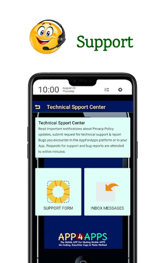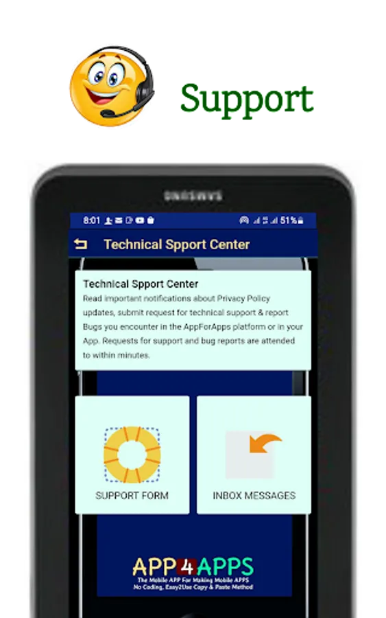 The AppForApps Team provides 24 hours technical support to users. The AppForApps team is eager to hear from you directly on how this exciting app creator can be improved or to be of more use to you or your business than it already is. Please contact us with any suggestion or questions via the in-app User ID or here; admin@nairapluskobo.com we'd like to hear from you.mu