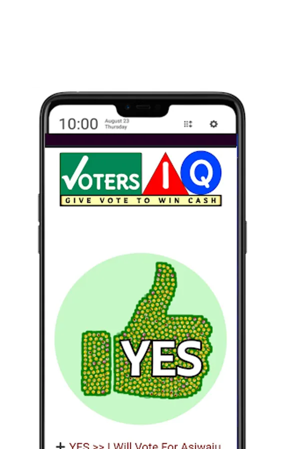 VotersIQ is a polling app that everyone can use to participate in in-app opinion polls and surveys that are based on current affairs and global events in Africa, America, Asia, Europe and Oceanic countries and thereby win a share of the minimum cash prize of $1000+ attached to each poll/survey. VotersIQ Users can also earns residual income of $0.10+ from the sales of each poll results with filterable demographics data that are published based on each user's preference per poll or as authorized by the user generally.