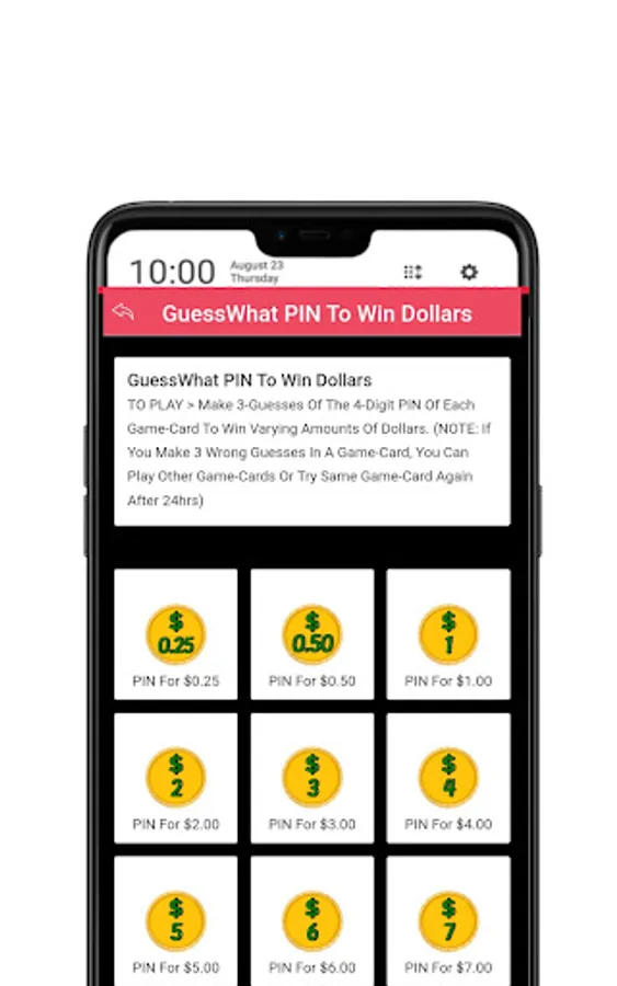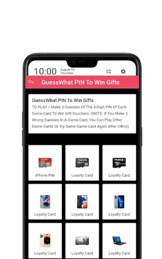 In this addictive game, players are presented with a variety of game cards, each with a cash, cryptocurrency or gift voucher prize attached. To win the prize, all you have to do is correctly guess the 4-digit PIN associated with the card with the help of hints and tips that makes it easy to guess the correct PIN. With thousands of combinations possible, every round is a new and exciting challenge!