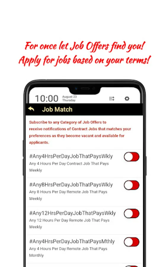 Instant Notifications: Say goodbye to refreshing job boards endlessly. Job-Offer-App keeps you updated in real-time. When a job that matches your preferences becomes available, you'll receive instant notifications directly to your mobile device. Never miss a potential opportunity again!