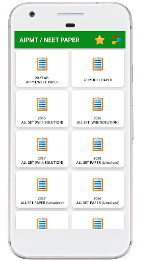 20 ( included Year 2022 Question with Solution) YEAR AIPMT/ NEET PAPER And 28 MODEL PAPER | From 2000 to till 2022 All Set of NEET Paper Are included, Even you can save all Pdf File in Your Mobile. This application contains all sets of NEET preparation paper. Also For Hindi Medium Student Have NEET Quiz (Physics Chemistry Biology) | NEET Physics Formula | NEET Chemistry Formula.