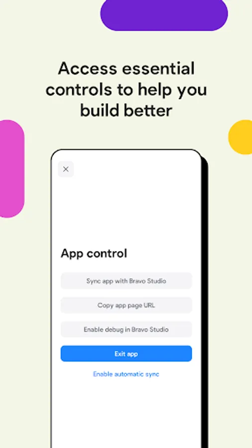 💡TIP: While you are previewing a project, long-press anywhere on your screen to return to your projects list or update changes with Bravo Studio.