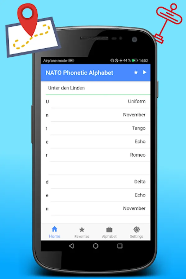 Use the official word spelling system used in aviation and other NATO military forces during radio communication!