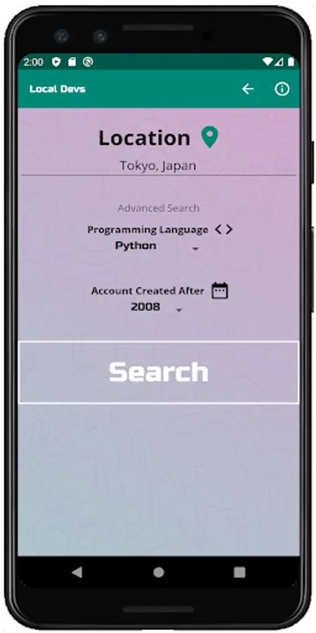 Finding nearby developers and programmers has never been more easy to do! "Local Devs" app will bring you a list of GitHub user accounts right in the palm of your hand. This tool is incredibly useful for developers wishing to collaborate with other nearby programmers, or for businesses and recruiters looking for nearby talent! You can search for programmers by location, or with other advanced search settings such as specific programming languages.