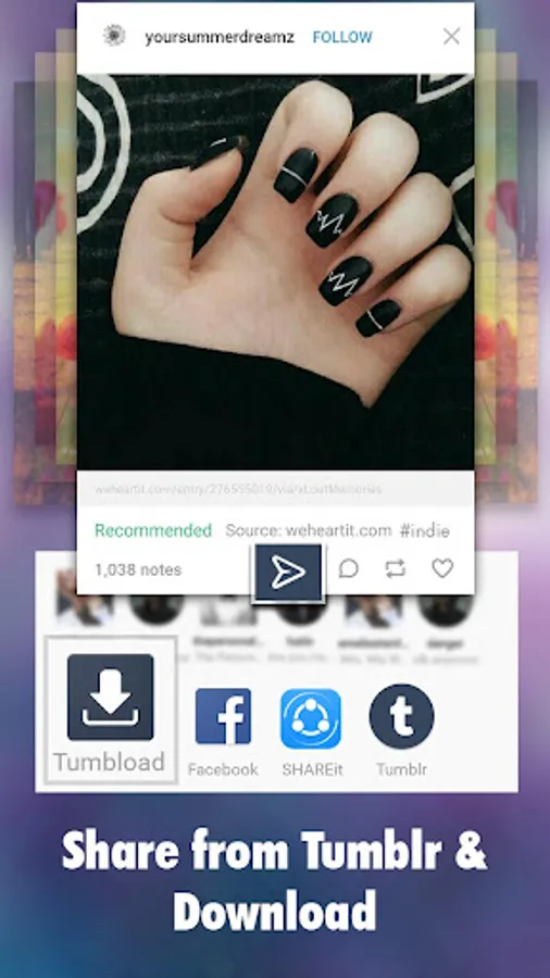 Tumbload lets you download photos/videos from Tumblr quickly and easily. Any media on tumblr can be download by share link. Just browse to any media (photo or video) in tumblr app, and then tap share, select Tumbload app from the list of apps. Tumbload will now load the media and you can easily download it to your phone and watch it offline.