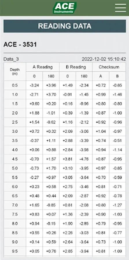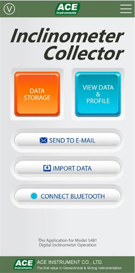 The “Inclinometer Collector” app is a dedicated app that operates Ace Instruments’ Model 5481 digital vertical and horizontal inclinometer.