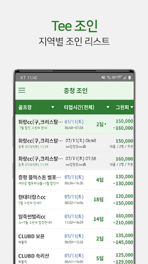 A place where you can make same-day bookings such as remaining time and joins at golf courses near Seoul