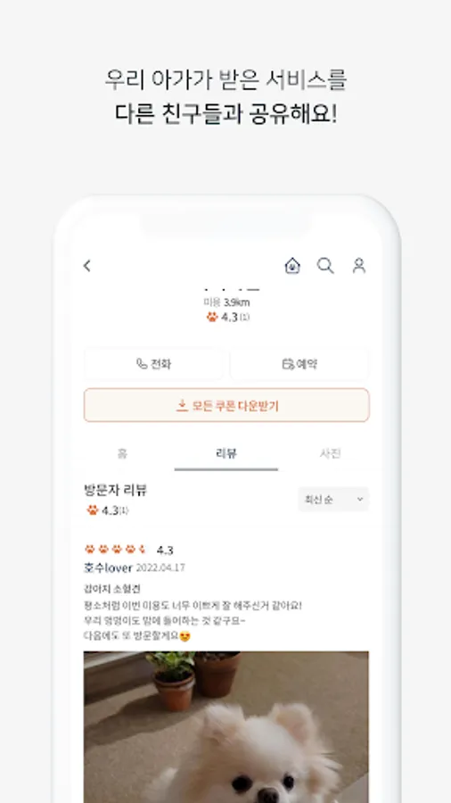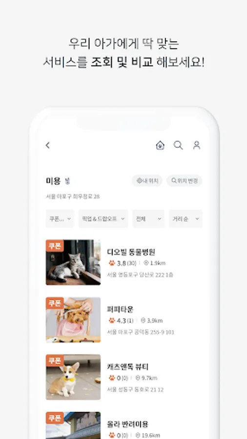 Pet service reservation/payment possible: Customers using the 'Oguogu' app can easily inquire and compare information about pet beauty shops, hospitals, hotels, and education/training centers based on their location, and view the service online. You can easily book and pay.