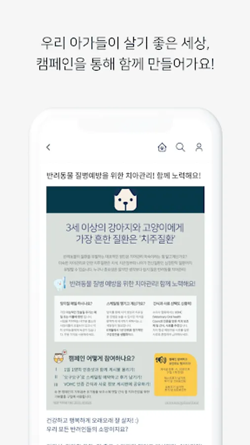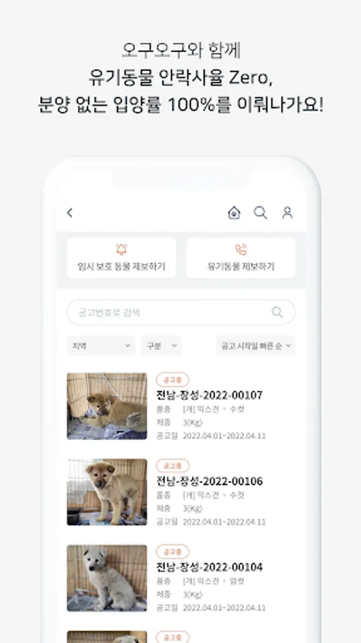 Non-profit campaign promotion and sponsorship: Promote social activities by constantly exposing non-profit campaigns related to companion animals, such as illegal breeding grounds, animal cruelty, and encouraging participation in volunteer activities, at the top of the 'Oguogu' app, making it more convenient for customers using the 'Oguogu' app to actively participate in social activities.