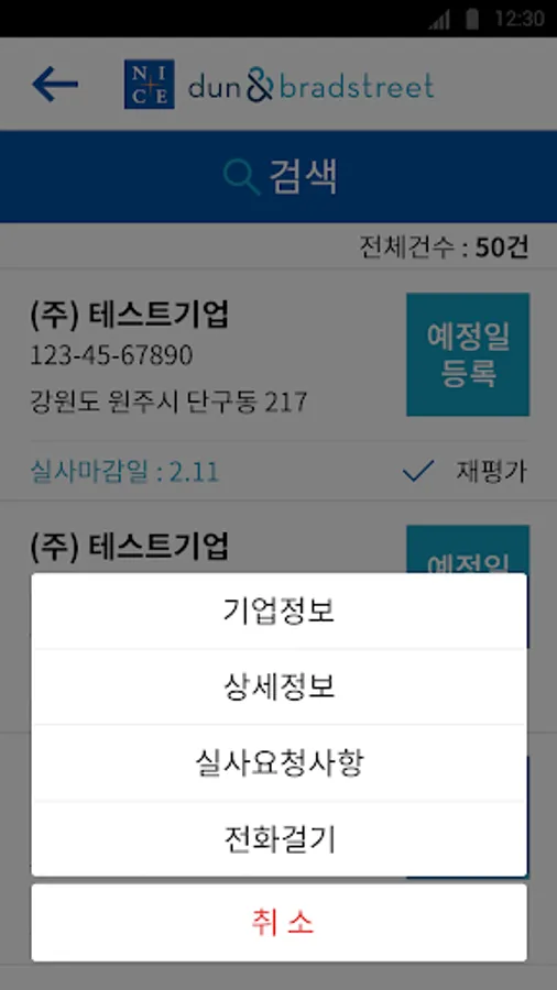 NICE D & B TCB due diligence management, which was limited to Internet PCs, has been expanded to mobile environment, so you can use the business information inquiry and business registration related tasks more freely and easily!