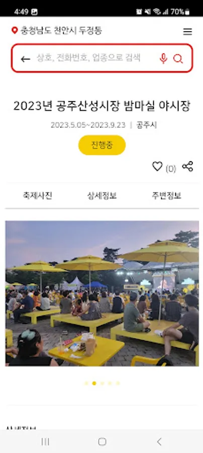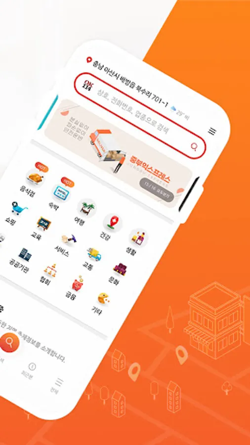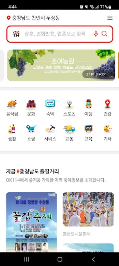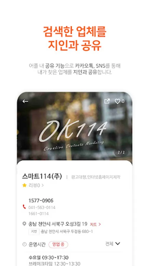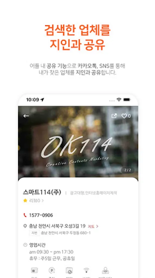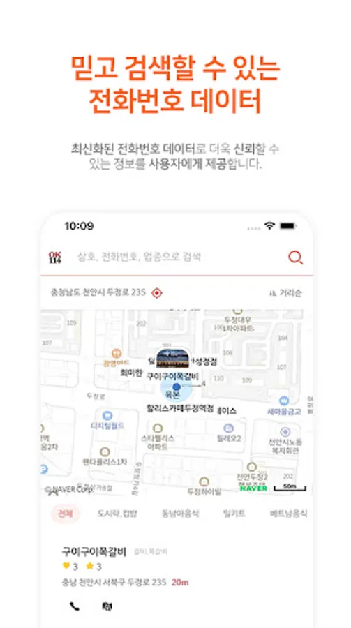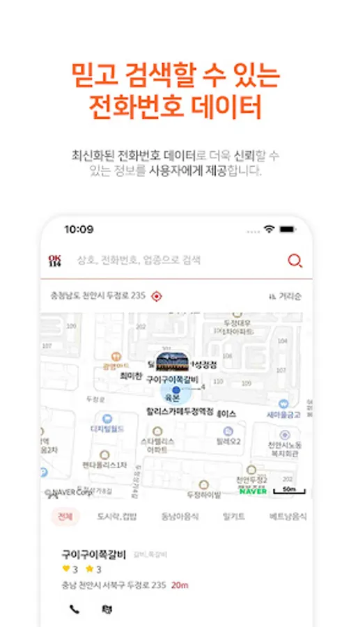 The OK114 application provides location-based information, so your location is automatically set, so you can conveniently search for nearby businesses.